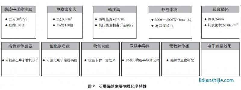 現(xiàn),2位教授共同在2010年獲得諾貝爾物理學(xué)獎(jiǎng)。在此背景下,石墨烯的眾多方向研究如火如荼的展開(kāi),并且迅速在全球范圍里掀起了石墨烯制備、石墨烯復(fù)合技術(shù)和材料、石墨烯下游產(chǎn)品等的研究熱潮。石墨烯材料超強(qiáng)的物理、化學(xué)和機(jī)械等主要特性如圖2所示。