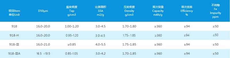 高能量密度 長壽命 簡單化(不需添加導電劑) 該系列產品適合于高端方形、聚合物及圓柱鋰離子電池。 ![]()