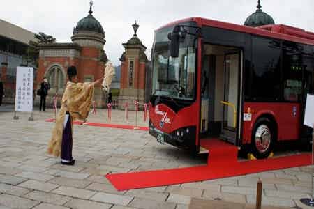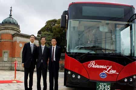 2月23日在有近120年歷史的京都國立博物館內舉行的K9運營啟動儀式上,日本國土交通省官員阪部光雄表示:“非常高興能在京都迎來比亞迪的純電動巴士,這是京都公交系統首次采用零排放的純電動巴士,運營純電動巴士對于地區的環境治理意義非常深遠,日本政府將繼續努力做好更多的相關公交方面的嘗試。”