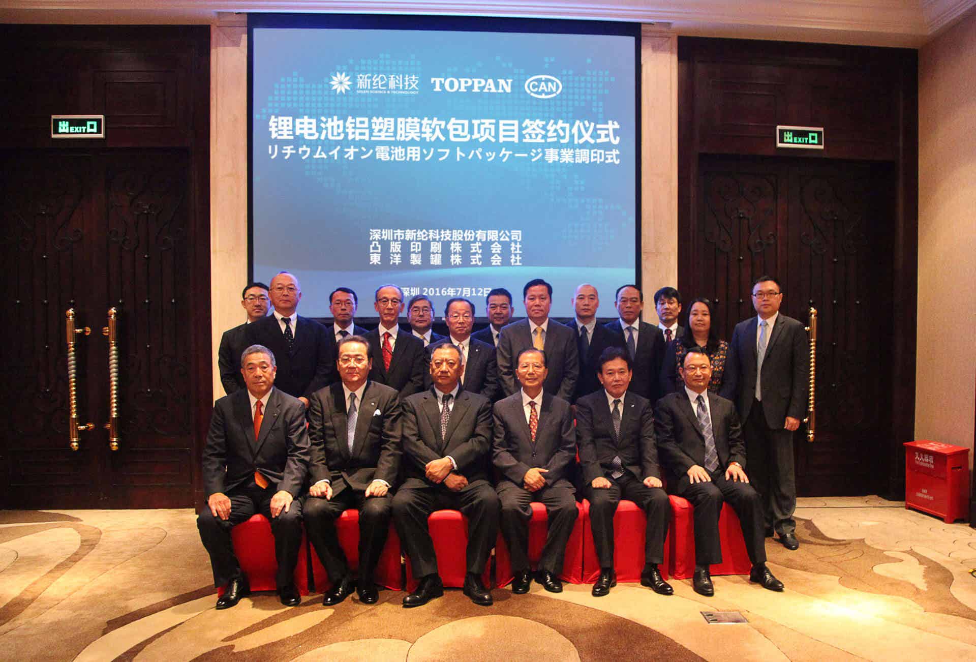 鋰電世界2016年7月12日上午10時,與凸版印刷株式會社、東洋制罐株式會社及株式會社 T&T Enertechno共同在深圳市華僑城洲際酒店舉行了“鋰電池鋁塑膜軟包項目”簽約儀式,正式簽署了該項目的各項子協議。