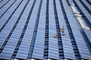 電池板設(shè)置作業(yè),先要在陸地上將電池板安裝在浮體式架臺(tái)上,將連接14張電池板的陣列(電池板設(shè)置單位),用船拖至水上的電池板設(shè)置場所(水上漂浮的太陽能電池板)后,再行連接。