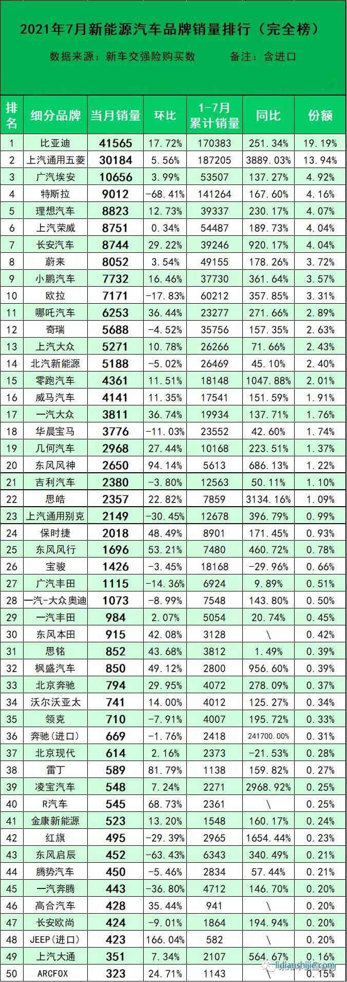 以上就是7月新能源汽車品牌終端銷量排行榜,數據來源新車交強險購買數,你的愛車品牌上榜了嗎?歡迎留言分享。