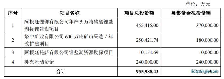 本次募資的第三個(gè)投向是阿根廷托薩有限公司鋰鹽湖資源勘探項(xiàng)目,該項(xiàng)目擬投資1.02億元,預(yù)計(jì)勘探期為12個(gè)月,在阿根廷的阿里扎羅鹽湖進(jìn)行資源勘探。