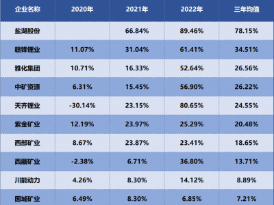 鋰礦成長(zhǎng)能力前十企業(yè):