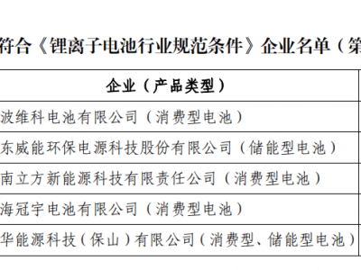 山東威能成功入選第四批符合《鋰離子電池行業規范條件》企業名單