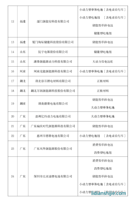 擬公告符合《鋰離子電池行業(yè)規(guī)范條件》企業(yè)名單(第八批)公示