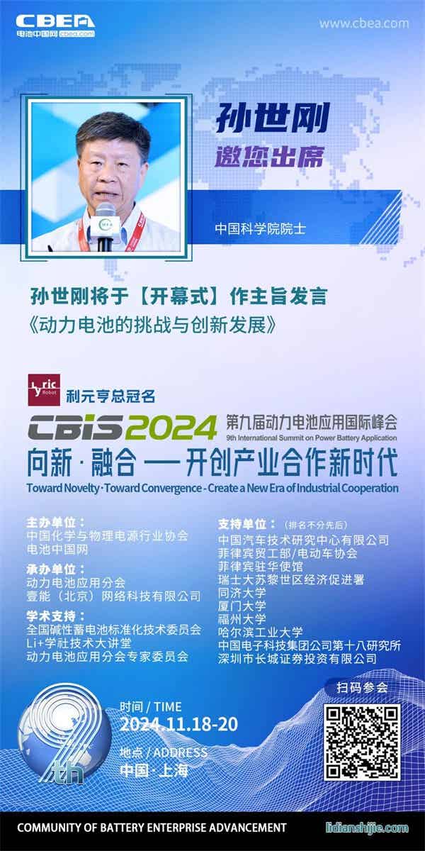 2024年11月18日-20日,由中國化學與物理電源行業協會聯合電池中國網共同主辦,廣東利元亨智能裝備股份有限公司總冠名的第九屆動力電池應用國際峰會(CBIS2024)將在中國上海召開。峰會主題為“向新?融合——開創產業合作新時代”。