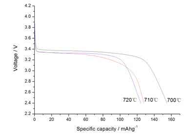Fig 3 the initial discharge profiles of LiFePO4/C composite materials prepared at different temperatures