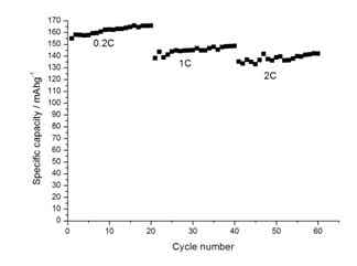 Table 1 electrochemical properties of LiFePO4/C composite materials prepared at 700℃ at different rates