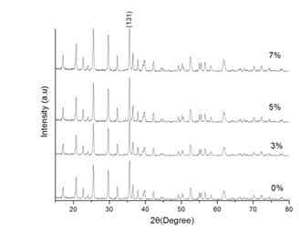 Fig 6 XRD patterns of LiFePO4/C composite materials prepared at 700℃ at different coated carbon amounts