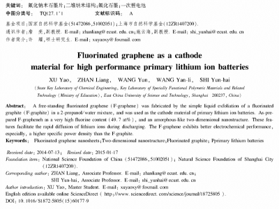 該研究小組從2009年開(kāi)始就在國(guó)家973和國(guó)家自然科學(xué)基金的支持下開(kāi)始研究氟化碳納米材料,實(shí)驗(yàn)室已經(jīng)成功研制出用于鋰電池的氟化碳納米管、氟化碳納米纖維、氟化碳微球等材料。氟化石墨烯顯著提高了鋰電池的比能量和比功率,為新型電源電極材料的發(fā)展奠定了技術(shù)基礎(chǔ)。