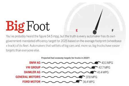 不過話又說回來了。之所以緊湊型小車銷量非常好,除能耗較低外,還得歸功于另一個有趣的排放標準:碳足跡(carbon footprint)。顧名思義,碳足跡指一個人的能源意識和行為對自然界產生的影響,簡單來說就是指個人或企業的溫室氣體排放量,以二氧化碳為標準計算。因此,每家車企都有著自己的碳足跡指標,而且碳足跡越小,代表該主機廠的平均油耗越低。按照美國環境保護署(EPA)的規劃來看,未來低油耗的車型是市場主流,要逐步減少鼓勵“縮減車型尺寸以符合排放標準要求”政策的扶持力度。