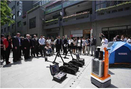 國務院總理李克強現(xiàn)身中關村創(chuàng)業(yè)大街,視察中關村創(chuàng)業(yè)情況,與創(chuàng)業(yè)者暢談就業(yè)。在視察過程中,一臺搜救排爆機器人吸引了總理的目光,總理近距離觀察了搜救排爆機器人的工作運行情況,并認真聆聽了設計人員的講解。李克強總理對設計人員說:“你們做了很好的展示,這個創(chuàng)新設計非常好”。