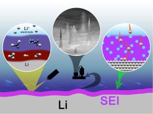 在金屬鋰負極的外表加上一層無機或有機人工SEI膜層,不只可以使得Li+堆積的愈加均勻,還能在Li+堆積時發生必要的應力,避免鋰枝晶的發生。