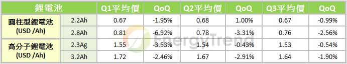 TrendForce研究經理呂理舜表示,一般而言九月和十月是為了歐美圣誕節(jié)慶備貨的海運高峰,但展望目前第四季即將發(fā)表的新機當中大多數(shù)新款產品仍是搭配高分子電池為主,第三季傳統(tǒng)NB拉貨需求勢必較往年更為平淡,讓圓柱型電池在歷經了七、八月的需求低迷之后,九月份依舊顯得冷清。