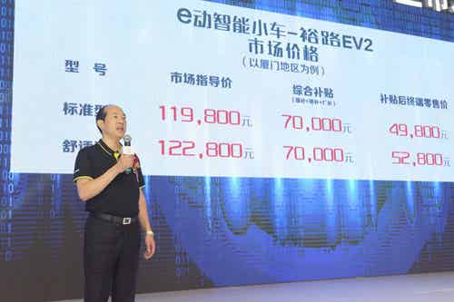 裕路EV2電池能量密度超過了120Wh/kg,享受國家和地方補貼政策,以廈門為例,綜合補貼共計7萬元。標準型的官方指導價為11.98萬元,補貼后價格為4.98萬元;舒適型的官方指導價為12.28萬元,補貼后價格為5.28萬元。
