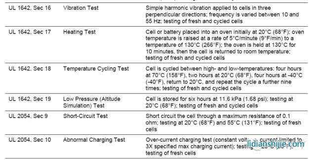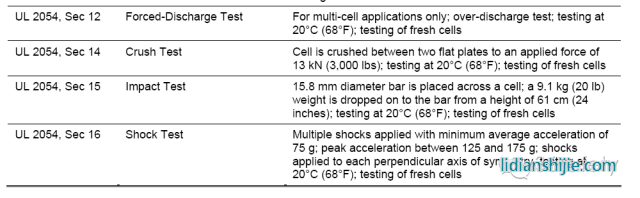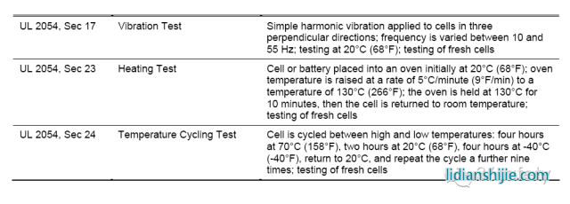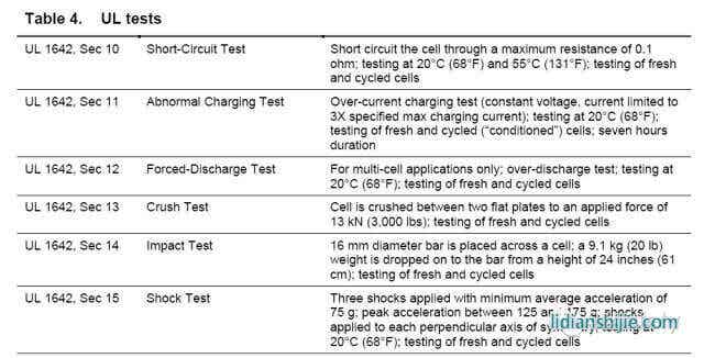 UL對(duì)于鋰離子電池相關(guān)測(cè)試要求