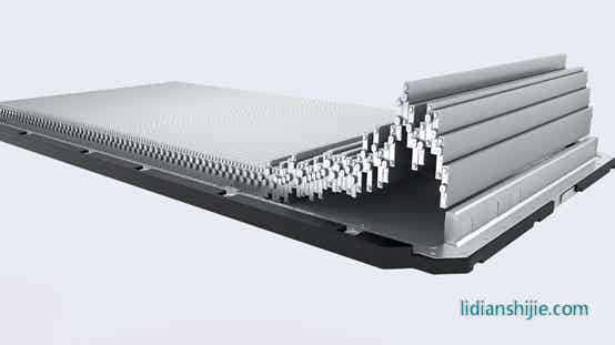 傳統(tǒng)電池包都是先把一定數(shù)量的電芯組成電池模組,然后再把數(shù)個模組放入電池包,組成電池。得利于刀片電池采用扁平化設(shè)計,比亞迪刀片電池采用無模組化設(shè)計,電芯直接組成電池包。刀片電池包的體積利用率提升了50%以上,在相同體積下“刀片”電池包可以攜帶更多的電量。