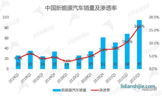 在國(guó)內(nèi)傳統(tǒng)汽車零售被消費(fèi)潛力弱、芯片短缺的不利因素籠罩的情況下,新能源汽車月銷量持續(xù)創(chuàng)新高,滲透率快速拉升至15%以上,預(yù)示著一個(gè)早期的行業(yè)跨入快速成長(zhǎng)階段,動(dòng)力電池的需求確定性極高。