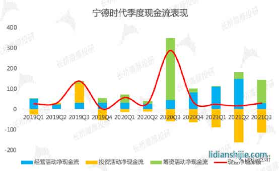 4、經(jīng)營(yíng)活動(dòng)現(xiàn)金流現(xiàn)壓力,強(qiáng)融資能力保駕護(hù)航。三季度公司經(jīng)營(yíng)活動(dòng)凈現(xiàn)金流僅29億元,相比二季度的148億元,本季度的經(jīng)營(yíng)活動(dòng)現(xiàn)金流邊際惡化,長(zhǎng)橋海豚君認(rèn)為背后的原因可能是提前支付現(xiàn)金鎖定材料供應(yīng),本季度末存貨環(huán)比二季度末增加108億元。不過(guò)寧王的融資能力強(qiáng),足以支撐階段性的資金需求,公司本季度籌資活動(dòng)現(xiàn)金流入增加約100億元,滿足了產(chǎn)能擴(kuò)張的資金需求。最終在手現(xiàn)金仍非常充裕。