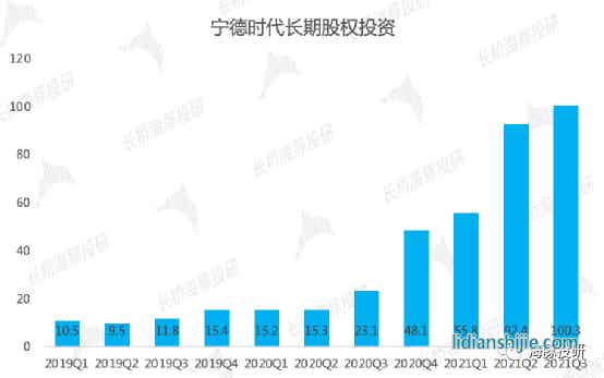 我們從寧德時(shí)代的長(zhǎng)期股權(quán)投資的角度可以略窺一二。截止2021年三季度末,公司長(zhǎng)期股權(quán)投資賬面金額超100億元,投資項(xiàng)目主要包括正負(fù)極鋰電材料、鋰電設(shè)備、電池資產(chǎn)運(yùn)營(yíng)、儲(chǔ)能、充電樁、換電服務(wù)等。