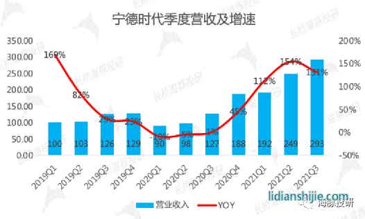 2021年第三季度公司實(shí)現(xiàn)營(yíng)收293億元,同比增131%,基本符合預(yù)期,實(shí)現(xiàn)歸母凈利潤(rùn)32.7億元,首次站上單季度凈利潤(rùn)30億元,同比增130%,超預(yù)期。2021年前三季度公司公司實(shí)現(xiàn)營(yíng)收733.62億元,同比增133%,實(shí)現(xiàn)歸母凈利潤(rùn)77.5億元,同比增131%