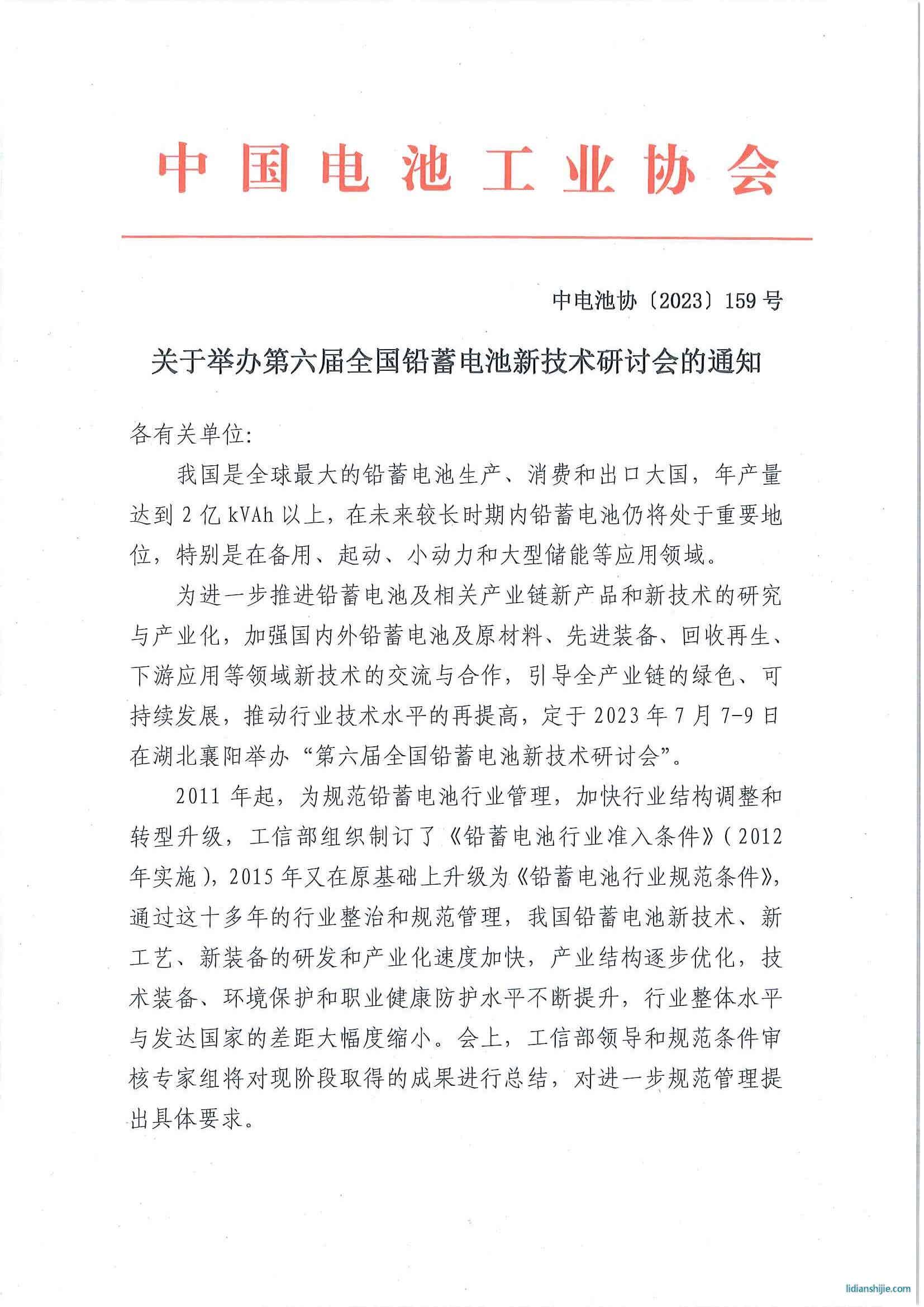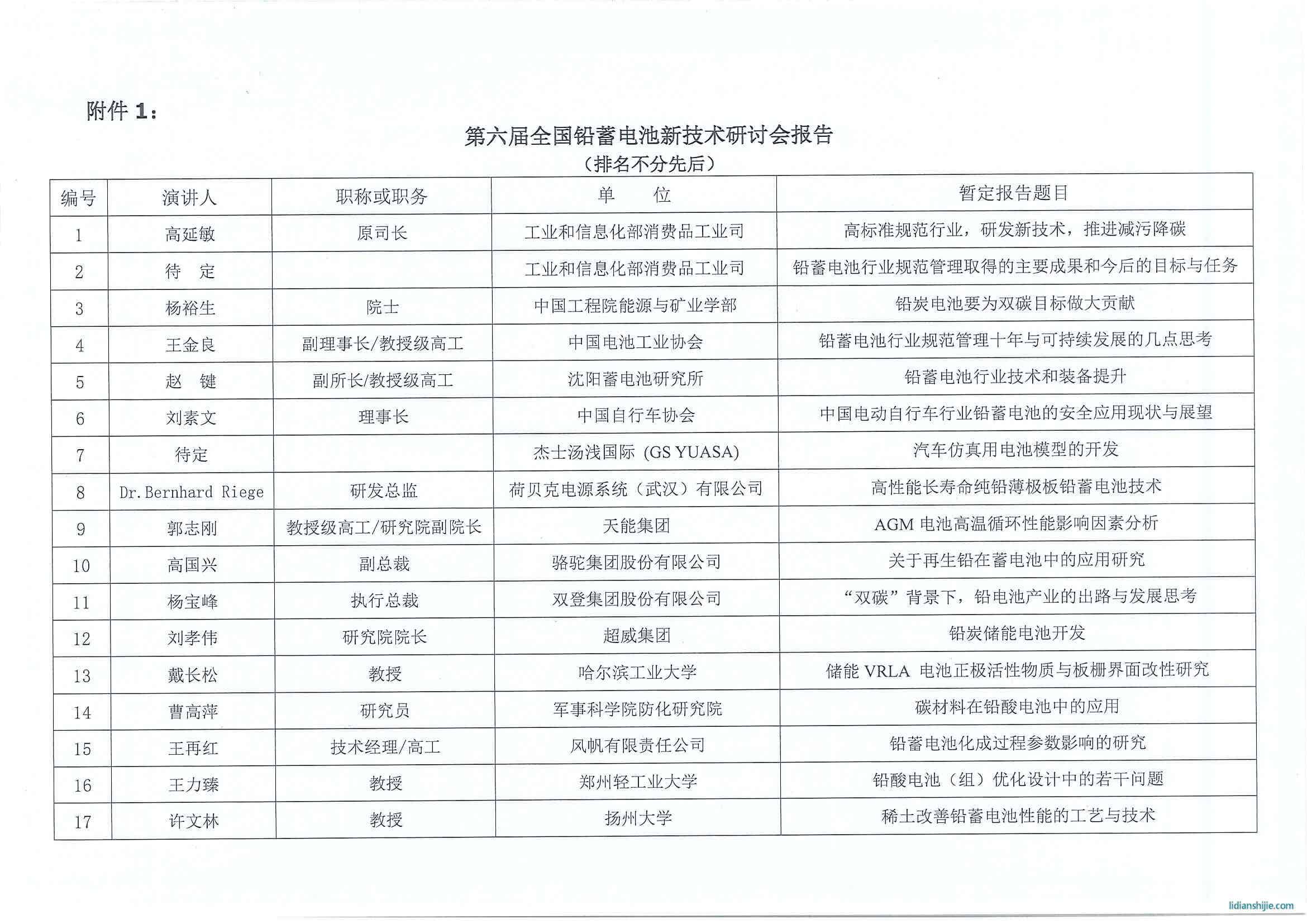 關于舉辦第六屆全國鉛蓄電池新技術研討會的通知 2023-06-07 534900 核心提示:文件下載:第六屆全國鉛蓄電池新技術研討會會議通知.pdf作者:中國電池工業協會 文件下載: 第六屆全國鉛蓄電池新技術研討會會議通知.pdf 作者:中國電池工業協會 點贊 0舉報收藏 0打賞 0評論 0分享 78 更多>同類鋰電資訊 • 感覺未來主流會是大電池增程 • 奔馳正加速推進電動車固態電池上車進程 • 磷酸鐵鋰電池漸成市場主力 • 迷之碳酸鋰庫存 • 鋰電產業鏈周記 | 寧德時代聯手五大車企發布10 • 天能發布全新駐車鋰電池產品 • 中力再生鋰電叉車成汽車零部件企業降本增效“新 • 德意軍火巨頭向菲律賓出售先進鋰電潛艇 • 廣東首個“飛輪+鋰電”混合新型儲能電站落戶廣 • 美國關稅對于鋰電產業鏈的影響