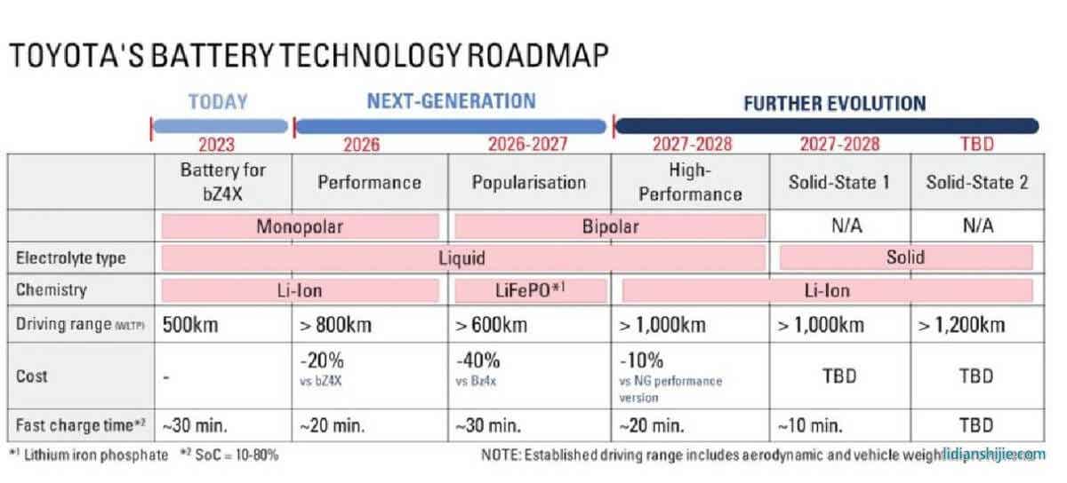 除此之外,豐田第二款高性能鋰離子電池也將在2027年-2028年問世,其續(xù)航里程將提升到612英里(1000km),且成本還將降低10%,預(yù)計是豐田未來的主力電池。