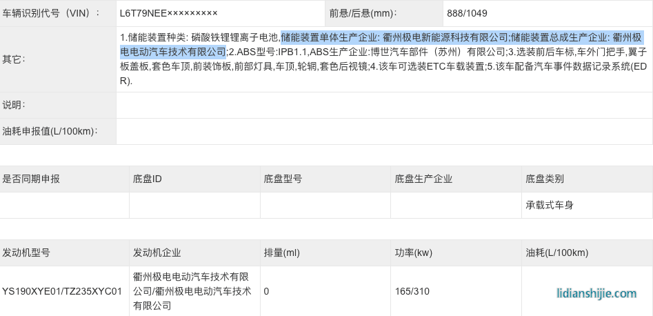 據(jù)悉,金磚電池將首搭極氪007,配套該電池的車型已進(jìn)入工信部新車公告,據(jù)工信部公告信息,電芯由衢州極電新能源科技有限公司生產(chǎn),電池系統(tǒng)由衢州極電電動汽車技術(shù)有限公司生產(chǎn),這兩家公司的股東為吉利產(chǎn)投,背后均由吉利控股集團100%持股。