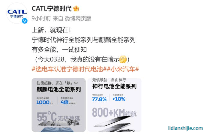 據(jù)了解,今日早些時(shí)間,寧德時(shí)代對(duì)外發(fā)布了神行電池全能系列及麒麟電池全能系列的最新成果,并預(yù)告將在今晚揭曉?xún)煽铍姵厥状未钶d的量產(chǎn)車(chē)型。在此之前就有不少網(wǎng)友猜測(cè)首發(fā)落地車(chē)型或是小米SU7。