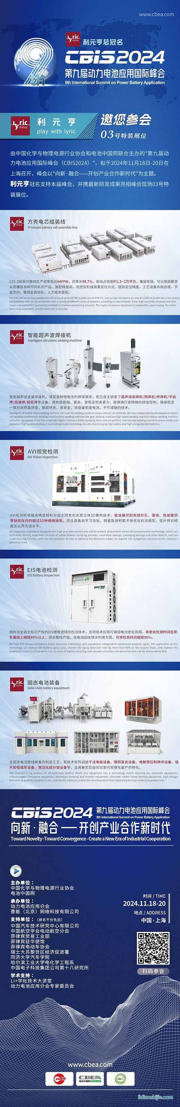 利元亨邀您參加第九屆動(dòng)力電池應(yīng)用國際峰會(huì)(CBIS2024) 2024-09-10 電池中國網(wǎng)9060 核心提示:利元亨邀您參加第九屆動(dòng)力電池應(yīng)用國際峰會(huì)(CBIS2024) 利元亨邀您參加第九屆動(dòng)力電池應(yīng)用國際峰會(huì)(CBIS2024) 點(diǎn)贊 0舉報(bào)收藏 0打賞 0評論 0分享 76 更多>同類鋰電資訊 • 新甲子?新動(dòng)能 | 億緯鋰能總裁劉建華受邀出席 • 億緯鋰能受邀出席BNEF上海峰會(huì)儲(chǔ)能圓桌論壇,以 • 共筑綠色能源生態(tài) I 億緯鋰能與中國燃?xì)膺_(dá)成全 • 1.48GWh!億緯鋰能與Vimab BESS AB簽署諒解備忘 • 億緯鋰能何巍博士:大圓柱電池技術(shù)進(jìn)階與全場景 • 開源電池榮獲“2025年度制造業(yè)與物流業(yè)聯(lián)動(dòng)發(fā)展 • 共拓新篇 | 億緯鋰能與華寶新能達(dá)成深化戰(zhàn)略合 • 億緯鋰能董事長劉金成博士:鋰電池最堅(jiān)定的樂觀 • 億緯鋰能榮獲奇瑞商用車“優(yōu)秀供應(yīng)商”獎(jiǎng) • 億緯鋰能董事長劉金成博士:電動(dòng)化進(jìn)入新階段,