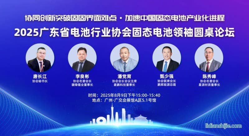 8月9日,以“協同創新突破固固界面難題·加速中國固態電池產業化進程”為主題的2025廣東省電池行業協會固態電池領袖圓桌論壇在廣州·廣交會展館A區4.1號館勝利召開!