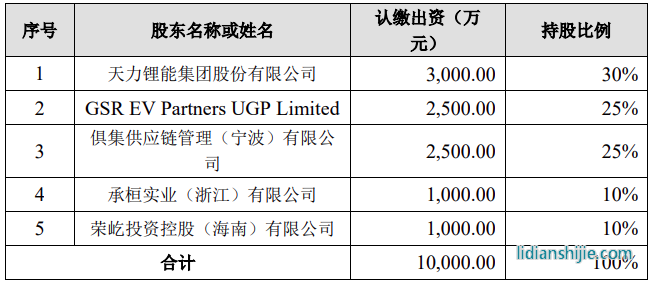 值得注意的是,新成立公司的股東之一俱集供應鏈管理(寧波)有限公司,是天力鋰能控股股東王瑞慶、李雯間接控股企業,天力鋰能持有其40%股權,且天力鋰能董事長之子王宇騰擔任俱集供應鏈公司的董事。