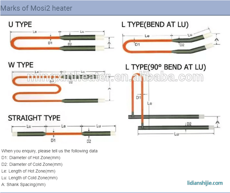 1800度硅鉬棒用于超高溫型試驗(yàn)爐子,爐內(nèi)溫度在1700-1800度左右,可選用熱端直徑6mm,冷端為12mm,當(dāng)然有時(shí)候電爐很小的話可用直徑3/6(主要取決于爐子的大小)的。選用合適規(guī)格的硅鉬棒對(duì)電爐來(lái)說(shuō)是非常關(guān)鍵的,第一看使用溫度,第二看使用功率,第三是電壓。一般情況下根據(jù)爐膛的長(zhǎng)度,排布開(kāi)來(lái),基本上都U型硅鉬棒。有的廠家想升溫快,可以使硅鉬棒的熱端直徑適當(dāng)?shù)脑龃鬁p小一毫米,但是安裝電爐硅鉬棒數(shù)量就是要有功率以及電壓的來(lái)決定,但是又怕電壓達(dá)不到可以少幾根也是可以的,排好距離就行,棒與棒之間的距離最好是同規(guī)格的中心距,合理的根據(jù)電爐所需的溫度情況來(lái)決定硅鉬棒的直徑。注:使用電爐硅鉬棒必須使用控電柜、一般廠家都會(huì)配備相配套的卡具。