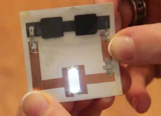 上面的圖片,當你撕開包裝袋的時候,里面隔絕了連通電路的封條也被揭掉,品牌標簽被點亮。非常棒的一個應用案例。同理,一些其他物品的手提袋、包裝袋,提著它們招搖過市的時候,大大的logo閃亮著,可以想象這種場景的回頭率。