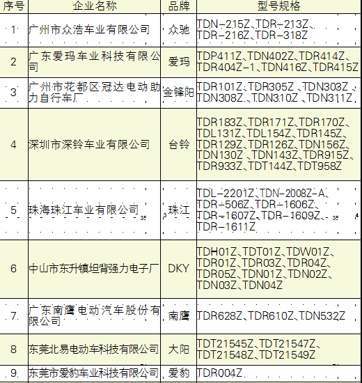 廣東省電動(dòng)自行車生產(chǎn)企業(yè)及產(chǎn)品目錄(第一期)