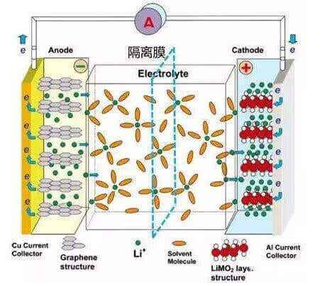 在充電時(shí),電池的正極上有鋰離子(Li+)生成,生成的鋰離子(Li+)經(jīng)過(guò)電解液從正極運(yùn)動(dòng)到負(fù)極,而負(fù)極的石墨是有微孔的層狀結(jié)構(gòu),到達(dá)負(fù)極的鋰離子(Li+)嵌入到碳層的微孔中,嵌入的鋰離子(Li+)越多,充電容量越高;在放電時(shí)(即我們使用電池的過(guò)程),嵌在負(fù)極碳層中的鋰離子(Li+)脫出,又運(yùn)動(dòng)回正極,回到正極的鋰離子(Li+)越多,放電容量越高。我們通常所說(shuō)的電池容量指的就是放電容量。