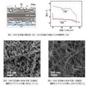 據(jù) NIMS介紹,碳納米管是“鋰空氣電池”所使用的空氣電極材料,通過電極結(jié)構(gòu)的優(yōu)化,可以實(shí)現(xiàn)30mAh/cm2的能量密度,這一數(shù)值是普通鋰電池的15倍之多(2mAh/cm2)。