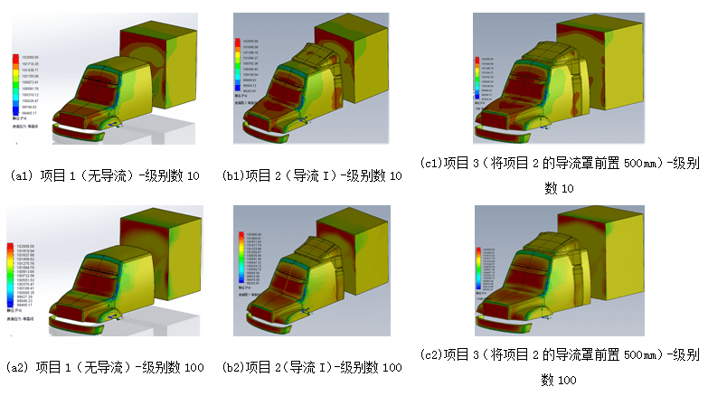 綜合來看,項目3將導流罩前置是三者中的最佳結構設計,有利于將風阻降為最低。