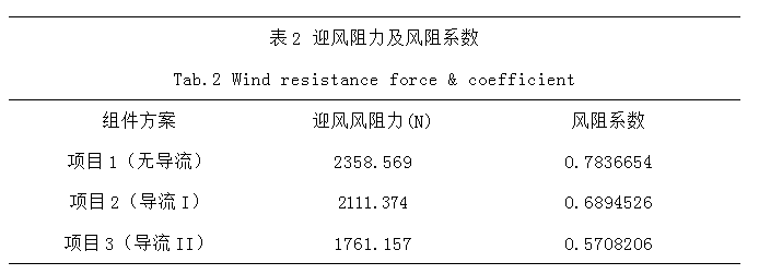 (2)三個項目的迎風阻力依次由2358N(項目1)降低至2111N(項目2),再降低至1761N(項目3),可知項目3的迎風阻力是三者最低的。