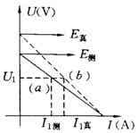 2、當路端電壓(即電壓表示數)為 時,由于電流表示數 小于干路電流 ,所以(a)、(b)兩圖線出現了實驗圖10-4所示的差異.